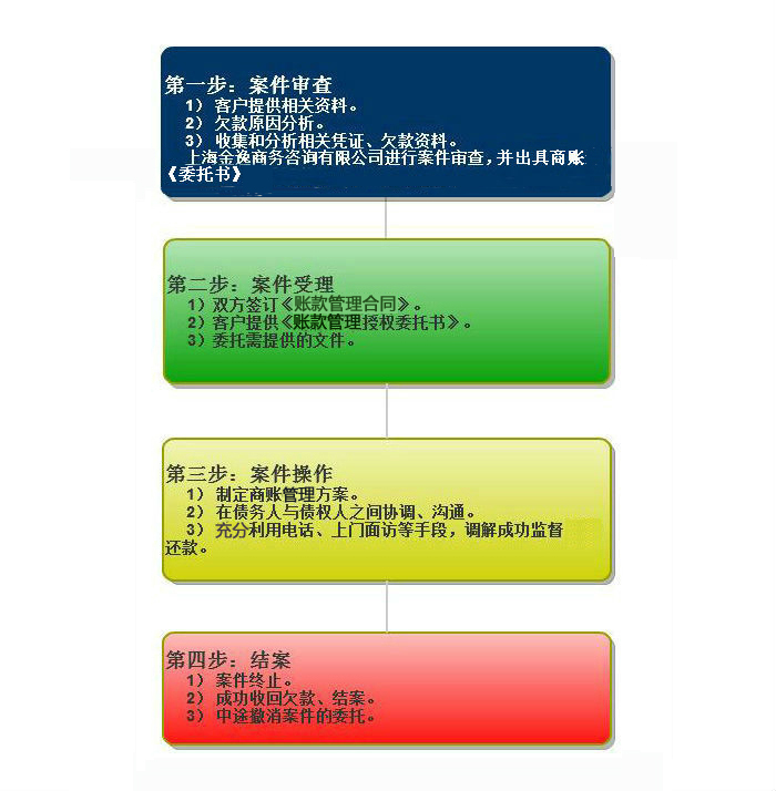 眾所周知,并不是所有未付賬款都可以輕松收回,所以我們的合作是基于您的許可,以及各種法律法規(guī)的約束之下實(shí)施解決信用問(wèn)題,我們利用嚴(yán)格但是公正的方式,絕不會(huì)損害您的企業(yè)形象