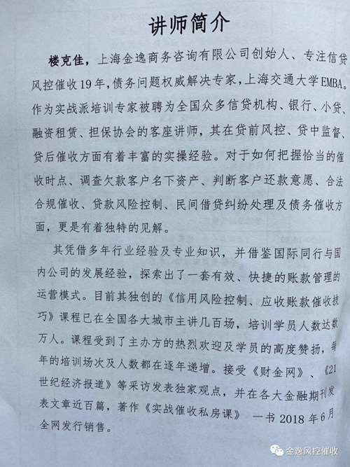 樓老師疫情后第一次線(xiàn)下培訓(xùn)課,行業(yè)資訊分享+民法典解讀+信貸風(fēng)控+逾期催收 四大板塊陸續(xù)講解。 培訓(xùn)過(guò)程中,樓總結(jié)合自身對(duì)行業(yè)的理解以及十幾年的催收經(jīng)驗(yàn),分享了實(shí)戰(zhàn)技巧,課程內(nèi)容通俗易懂,讓學(xué)員快速學(xué)以致用,得到了學(xué)員們的一致認(rèn)可。