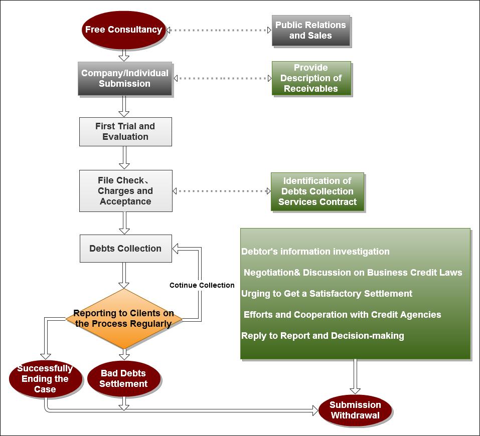 We, as an excellent receivables management consulting agent, will provide clients with professional, systematic, reliable receivables management. Since the service is strictly tailored according to the customer's requirements, in the short run, it can improve the management of the internal receivables; in the long run, it can be the most economical and the easiest way to build the company's own commercial account management department.