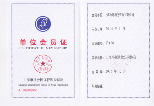 2014年1月,根據(jù)上海市小額貸款公司協(xié)會(huì)章程規(guī)定,我公司獲準(zhǔn)加入上海市小額貸款公司協(xié)會(huì),正式成為該協(xié)會(huì)會(huì)員單位,并成為其指定的唯一服務(wù)機(jī)構(gòu)。