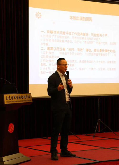5月28日在大連國(guó)際金融會(huì)議中心樓克佳老師受大連市小額貸款公司協(xié)會(huì)邀請(qǐng)舉辦主題為"信用風(fēng)險(xiǎn)控制、逾期賬款催收技巧及實(shí)戰(zhàn)案例分析"培訓(xùn)講座,培訓(xùn)過程中,樓克佳老師對(duì)目前的社會(huì)信用狀況、新版征信體系的變化、商業(yè)信用調(diào)查、新的常見危險(xiǎn)信號(hào)、催收前的準(zhǔn)備工作、催收需注意的原則性問題、施壓技巧及最新的法律要點(diǎn)進(jìn)行詳細(xì)講解,并通過實(shí)際發(fā)生的多種類型的案例進(jìn)行深度解剖分析,提醒大家在業(yè)務(wù)審核及事后催收過程中需把握和重視的關(guān)鍵環(huán)節(jié),得到了學(xué)員的一致好評(píng)。