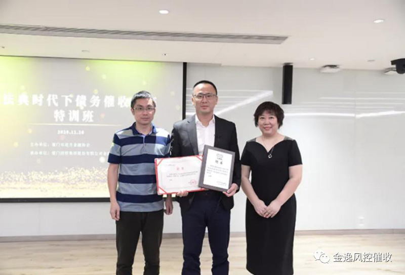 2020年11月26日,由廈門市地方金融協(xié)會主辦,廈門國貿(mào)集團(tuán)股份有限公司金融事業(yè)部承辦的民法典時代下債務(wù)催收技巧特訓(xùn)班圓滿結(jié)業(yè)。 廈門國貿(mào)集團(tuán)股份有限公司常務(wù)副總裁、金融事業(yè)部總經(jīng)理吳韻璇發(fā)表開班致辭,并與廈門市地方金融協(xié)會常務(wù)副秘書長蔡榮華一同為樓老師頒發(fā)《金融風(fēng)控特邀顧問》聘書。