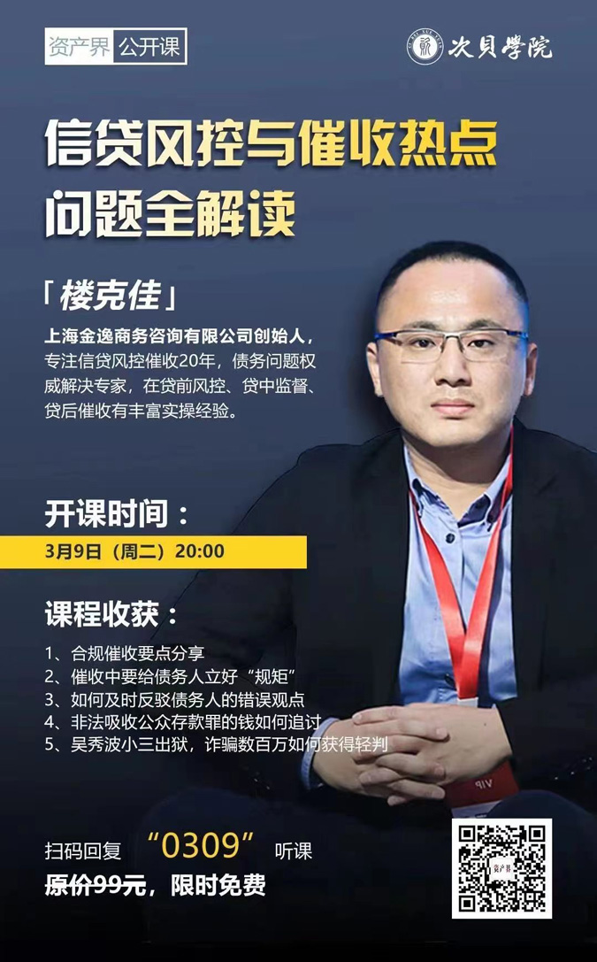 課程大綱: 1、合規(guī)催收要點(diǎn)分享 2、催收中要給債務(wù)人立好"規(guī)矩" 3、如何及時反駁債務(wù)人的錯誤觀點(diǎn) 4、非法吸收公眾存款罪的錢如何追討 5、吳秀波小三出獄,詐騙數(shù)百萬如何獲得輕判