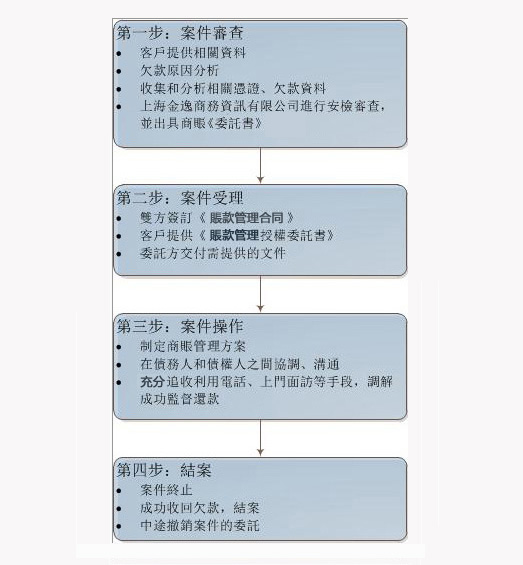 專業(yè)的賬款管理諮詢服務(wù),能從多個(gè)不同的渠道得知賬款人的近況和資產(chǎn),以迅速、快捷的行動(dòng)及適當(dāng)?shù)牟呗裕晒Φ厥栈厍房?。?jīng)驗(yàn)告訴我們,對(duì)欠款越早行動(dòng),收回的成功率越大。